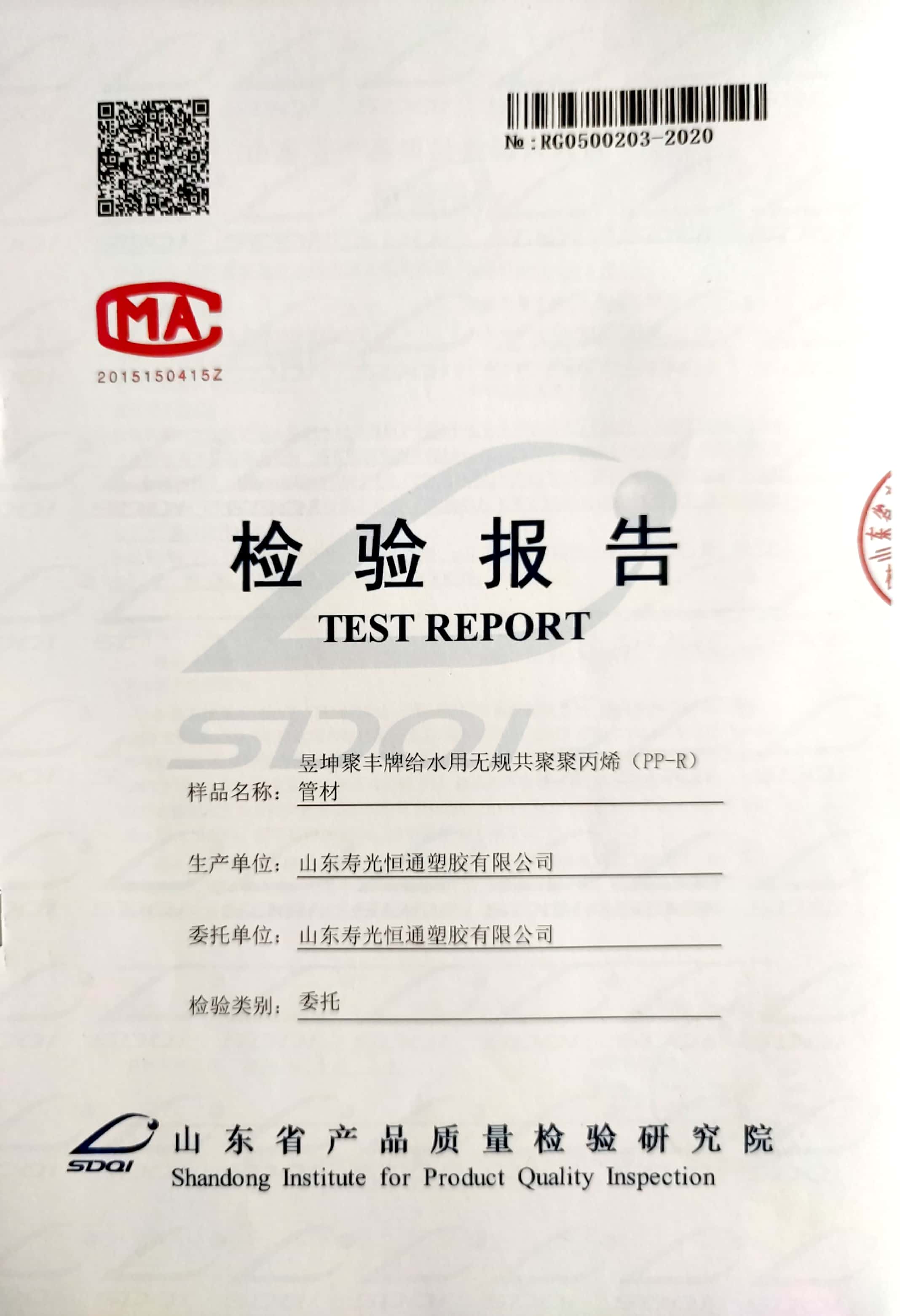 山東恒通塑膠 PPR管件 衛(wèi)生檢測報告PVC排水管、PVC供水管、PPR管、PE管、地暖管、灌溉管
